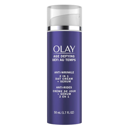 Olay Face Serum, Age Defying Anti-Wrinkle 2-in-1 Day Cream - Anti-Aging, Anti-Wrinkle, Smooths Fine Lines and Wrinkles, Firming, Lifting - Niacinamide, Glycerin, Aloe Vera, 1.7 Oz