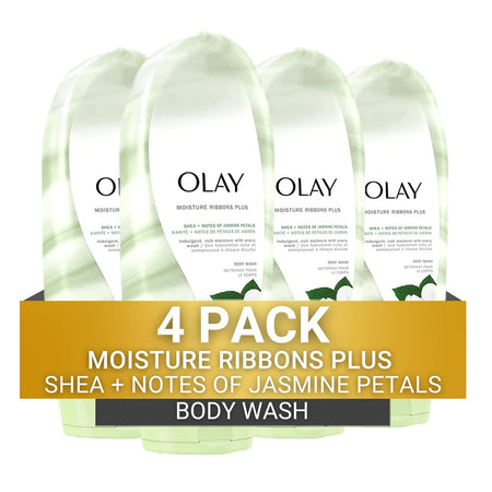 Olay Moisture Ribbons Body Wash with Shea and Notes of Jasmine Petals, 18 fl oz, (Pack of 4)
